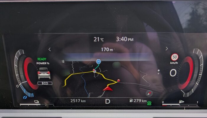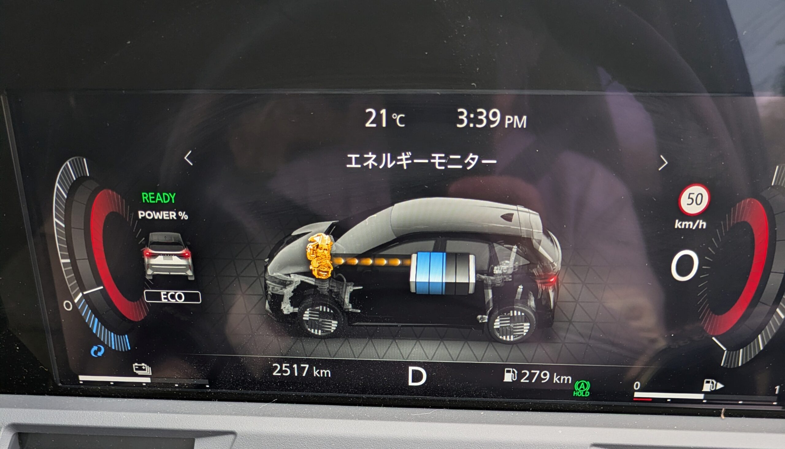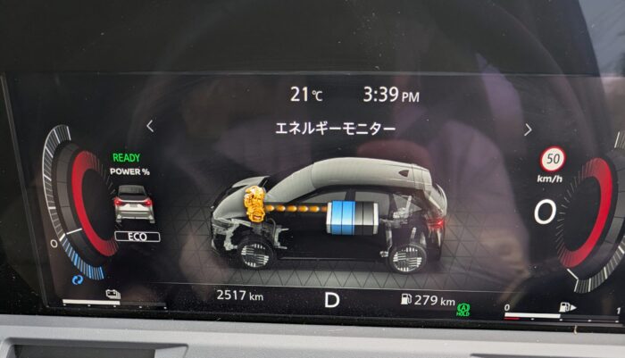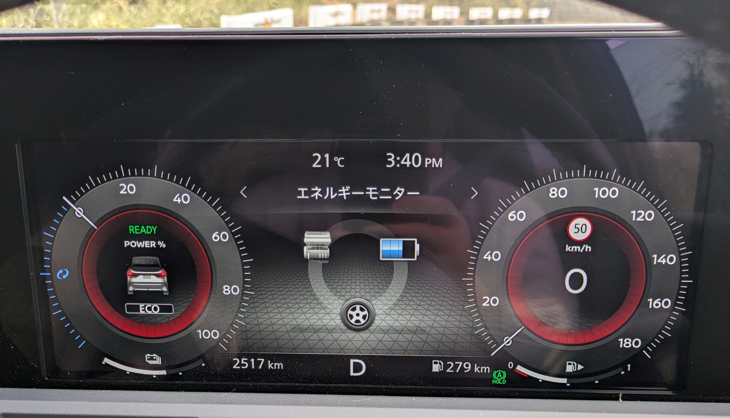 発進時はアクセルを軽く踏むだけで発進出来ます。ただこの機能もオンとオフのスイッチがありますがAURAはスイッチの状態をキープしてくれるので、一旦エンジンオフでもオードブレーキ機能は保持してくれます。この機能は今後必須になりそうです。