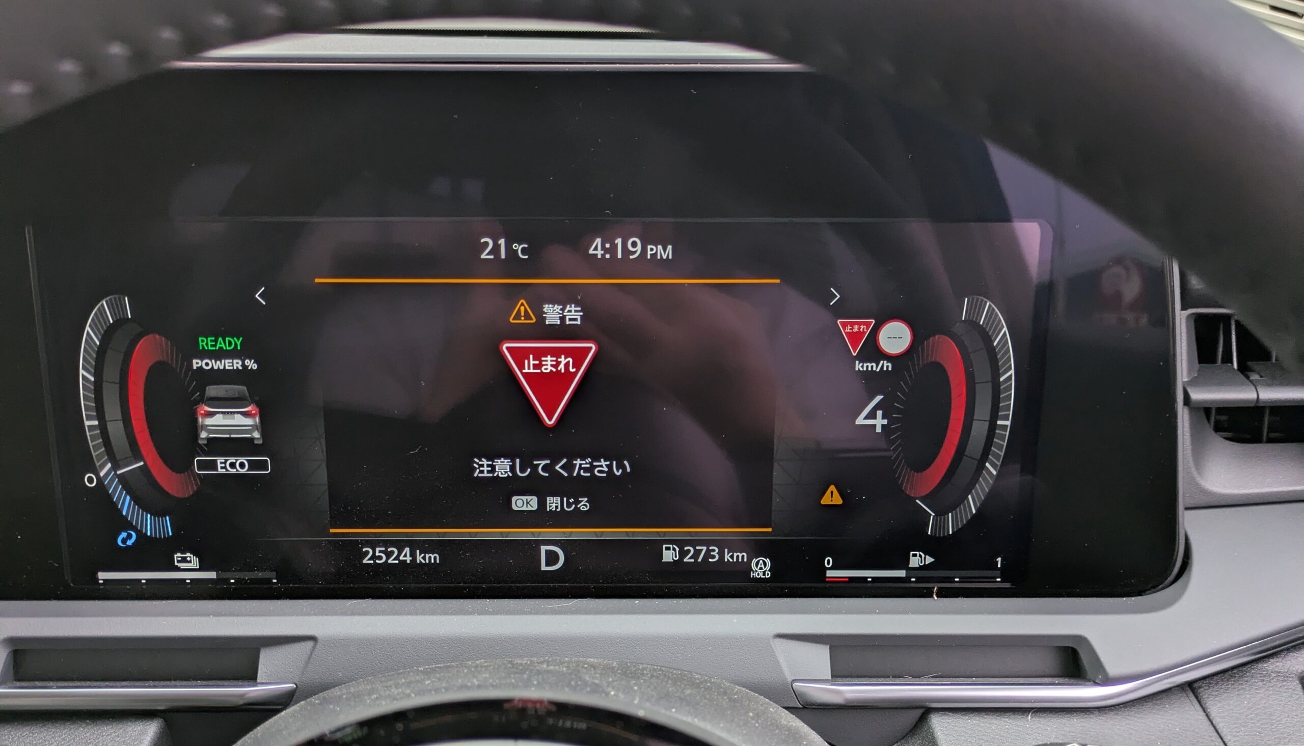 私は高速運転は1.0の機能で十分と思っています。速度コントロールとハンドル支援で高速走行時は殆ど使用しています。ただAURAのプロパイロットで付いた速度制限警告をオフにしないと警告が頻発します。90-100キロ設定で走っていると意外と80キロ制限が時々出ることに初めて気づきました。ICの近くなどや工事区間などになると80キロ制限あるんですね。速度警告がオンだと少し驚きます。